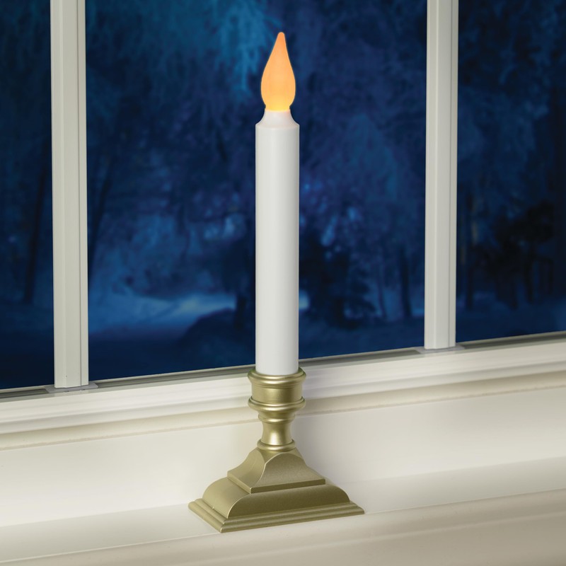 At 612 Vermont we have partnered with the leaders in high-end holiday candles to bring you attractive and cost efficient window candles for seasonal or year round use. Our partners have decades of industry knowledge and patents behind their technologies, which we have custom curated unique design finishes based on feedback from our customers. This listing features our Tier I, value priced window candle. The realistic, amber flickering LED flame provides an excellent flameless solution for window candles, dining rooms, or simply decorating around the house. Built in automatic timer turns on as soon as you insert the batteries. Stays on for 6 hours and then turns off for 18 hours. Cycle repeats daily. Unlike window candles with a sensor you don’t have to worry about indoor or outdoor light effecting the on/off function of the LED. Our timer function guarantees your candles go on at the same time every day. If you want to adjust the start time of the candles, simply open the battery compartment and then reconnect at the desired start time. This is now the new start time for the 24 hour timer cycle. Candlesticks removes from base if you choose to insert them inside a different candleholder. Candlestick diameter measures 27/32”. Candle when in base measures: 9.75” high, 1.75” deep and 3.125” wide. Requires 2 AA batteries (not included). One set of batteries will last approximately 60 days. Durable plastic construction resists breaks. Sturdy rectangular shape prevents tipping. Aesthetically pleasing design. Available in 2 base color finishes: Antique (black) and Pewter (Silver). Indoor use only.