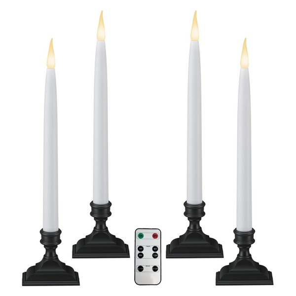 612 Vermont Battery Operated LED Window Candles with Timer, Remote Control, Warm White Flicker or Steady On, VTR1660A-4 (Pack of 4, Antique Bronze)