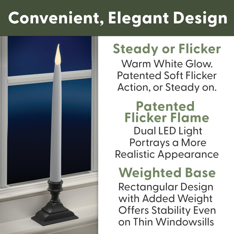 - Candles require 3 AA batteries per candle (not included). Approximately 70-day battery life (6-hour timer)