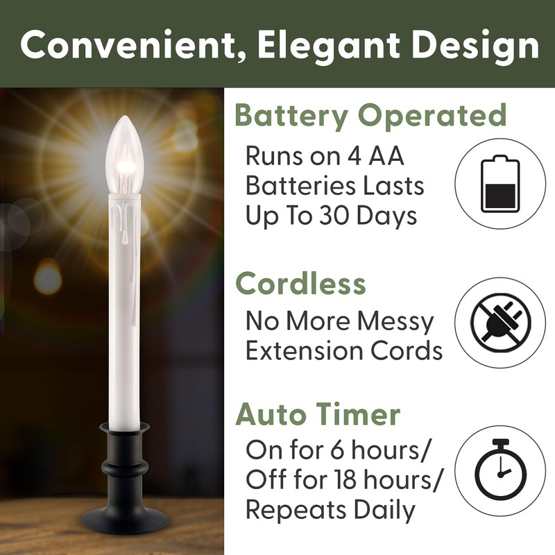 612 Vermont Ultra-Bright LED Window Candles with Timer, Battery Operated, Met...