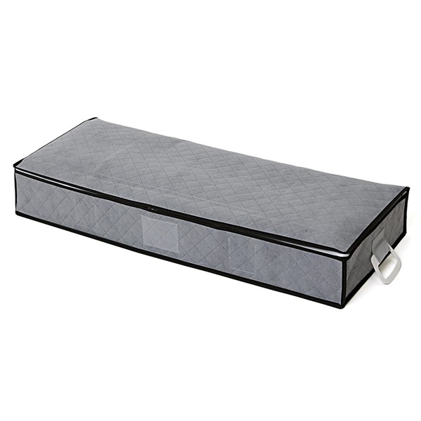 アストロ ベッド下 収納ケース グレー 不織布 活性炭 珪藻土 消臭 衣類収納 デッドスペース 薄型 折りたたみ 持ち手付き 615-29 スリム