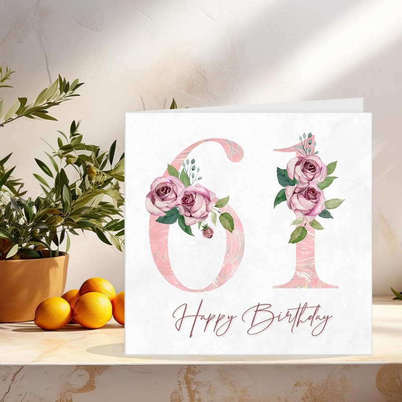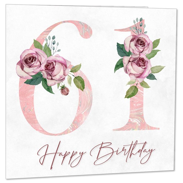 61st Birthday Card for Women - Floral 61st Birthday Cards for 61 year old woman Sixty One, Sixty First Ladies Nan Grandma Mum Aunt Sister Mom Friend