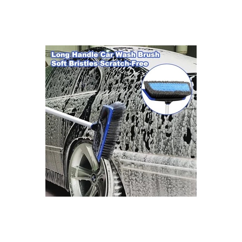 62'' Car Wash Brush with Long Handle, Scratch-Free Car Wash Mop Kit with Wheel