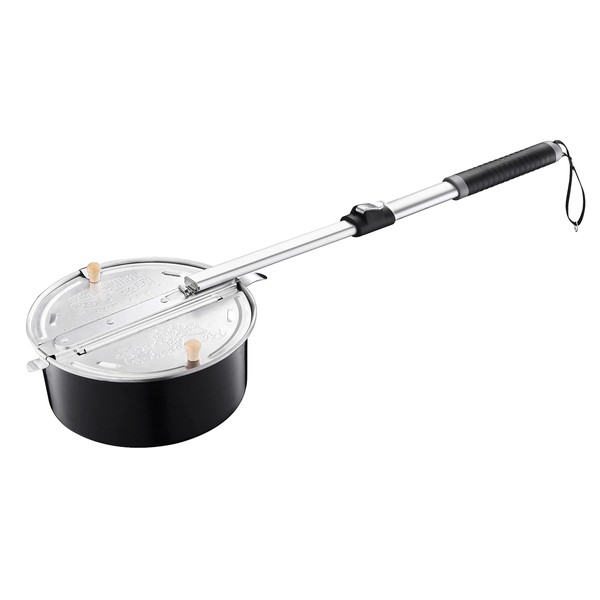 Campfire Popcorn Popper - Old Fashioned Popcorn Maker with Telescoping Handle - Camping Gear by Great Northern Popcorn (Black)
