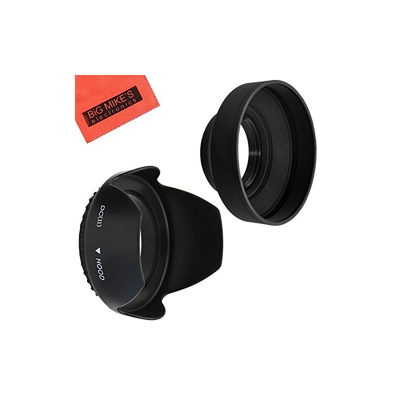- Package includes : 62mm Tulip Flower Lens Hood + 62mm Soft Rubber Lens Hood + Cleaning Coth