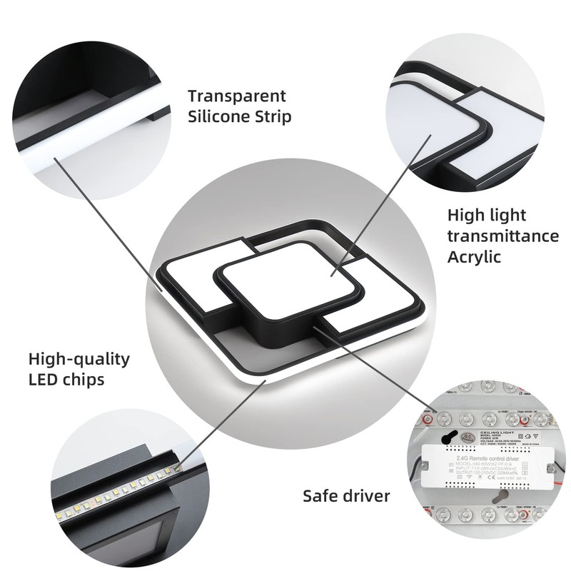 - 【High CRI & Eye Protection】Square ceiling lamp CRI index up to 90, which simulates natural light to the greatest extent and restores the truest colors. Advanced LED lighting can prevent stroboscopic. The specially treated acrylic lampshade can soften the light to a greater degree. This protects you and your child's eyes from harsh light. No matter day or night, your home is still full of colors.