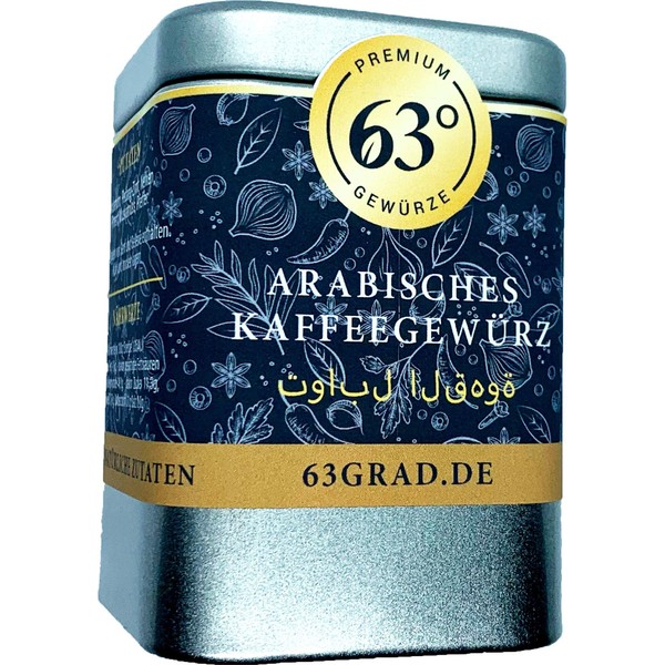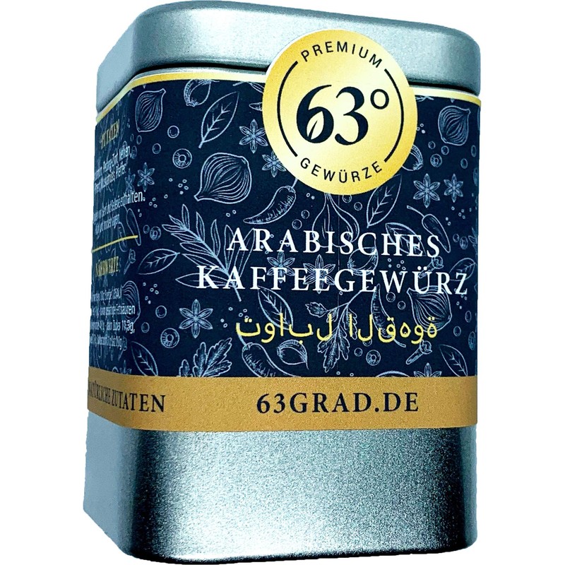 • The 63 Grad coffee spice is a wonderfully oriental spice mix to refine your coffee specialities. Whether espresso, cappuccino or a fine filter coffee, the Arabic coffee spice gives your coffee wonderfully oriental notes.