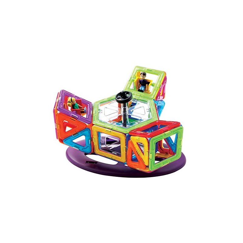 Containing Magformers squares and triangles, follow along with the step-by-step idea booklet and add carnival accessories. When playtime is over, use the magnetic power to simply stack and store.