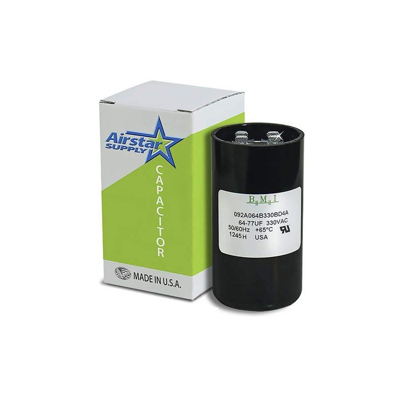 64-77 uF x 330 VAC - Well Pump Motor Start Capacitor - BMI Replacement # 092A064B330BD4A - Made in The USA