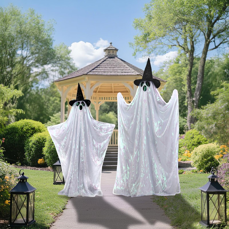 - [ 64-Inch Life-Size Ghost for Halloween Impact ] -Make a spine-chilling statement this Halloween with our 64-inch animated ghost. Dressed in a spooky witch hat and flowing iridescent fabric, it's the perfect centerpiece for your outdoor décor.