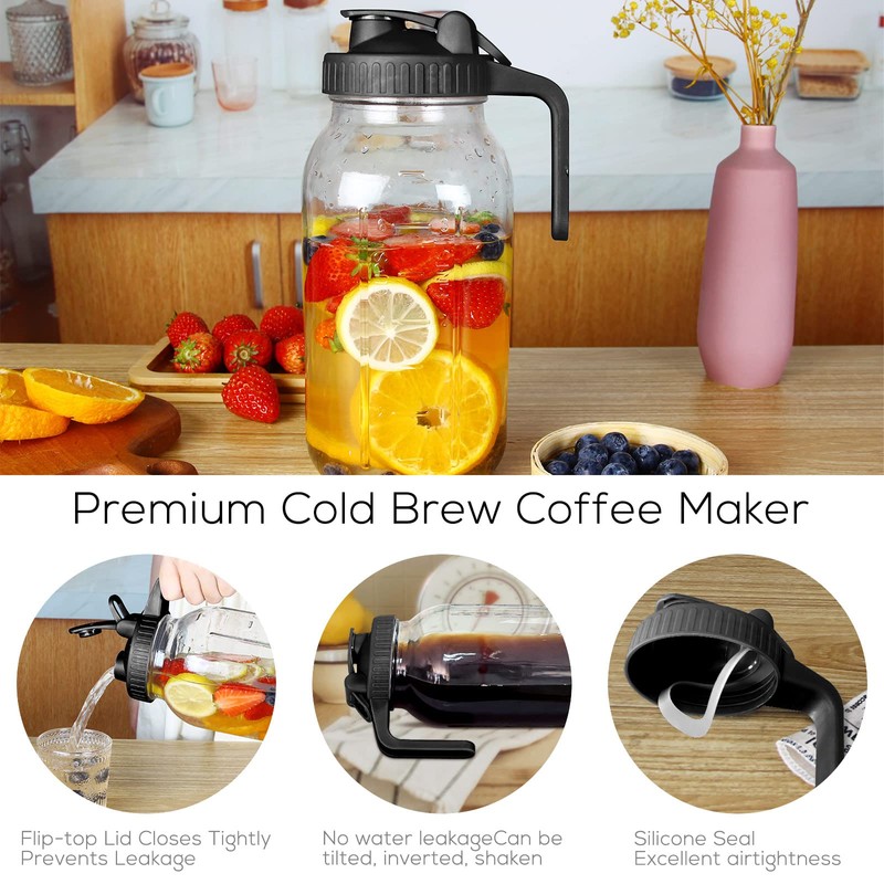 - Keep Your Drinks Fresh and Flavorful -64oz glass pitcher comes with an airtight flip with silicone seal that seals in the flavor and freshness of your favorite beverages while also being leak-proof. It's easy and convenient to open, pour and close, making it perfect for store your drinking