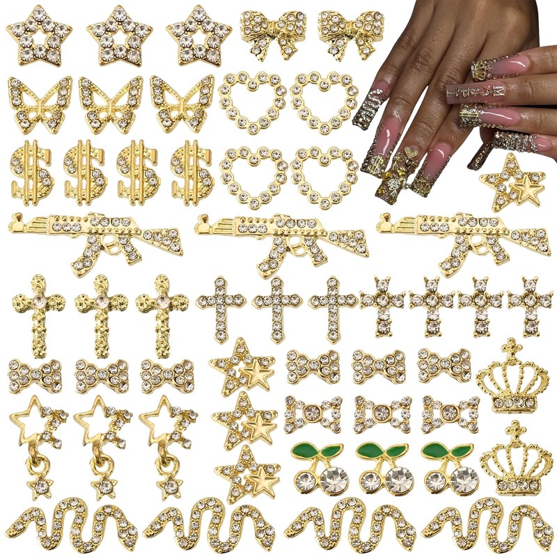 - Nail Charms Bulk: Introducing our nail charms and supplies collection, featuring 18 styles of gold nail charms—four pieces of each style, perfect for adding a touch of luxury and elegance to your manicures.