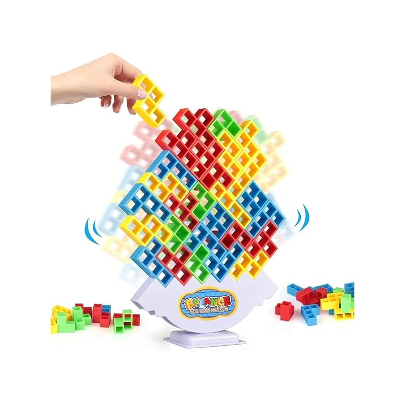64 Pcs Tetra Tower Stack Game, Block Tumble Stacking Game Set, Balance Building Board Game for Kids Adults Family Night, Easter Party Indoor Activities, Educational STEM Toys for Ages 6+