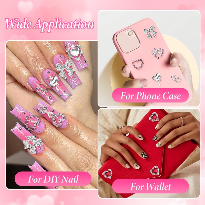 - Versatile Use: Ideal for DIY nail art, manicures, and pedicures. Suitable for special occasions such as parties, weddings, or Valentine's Day, and also great for everyday wear. Mix and match the different pieces nail charms to create unique and personalized nail art