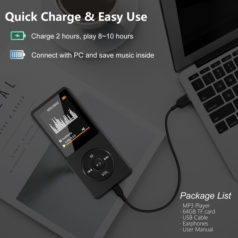 - 🎁 Long Working Time — Charging it to full only takes 2 hours, and it will play for you for 8~10 hours. Connect to laptop or computer via USB cable and you could download music onto it. Note: It will not sync with your iTunes.