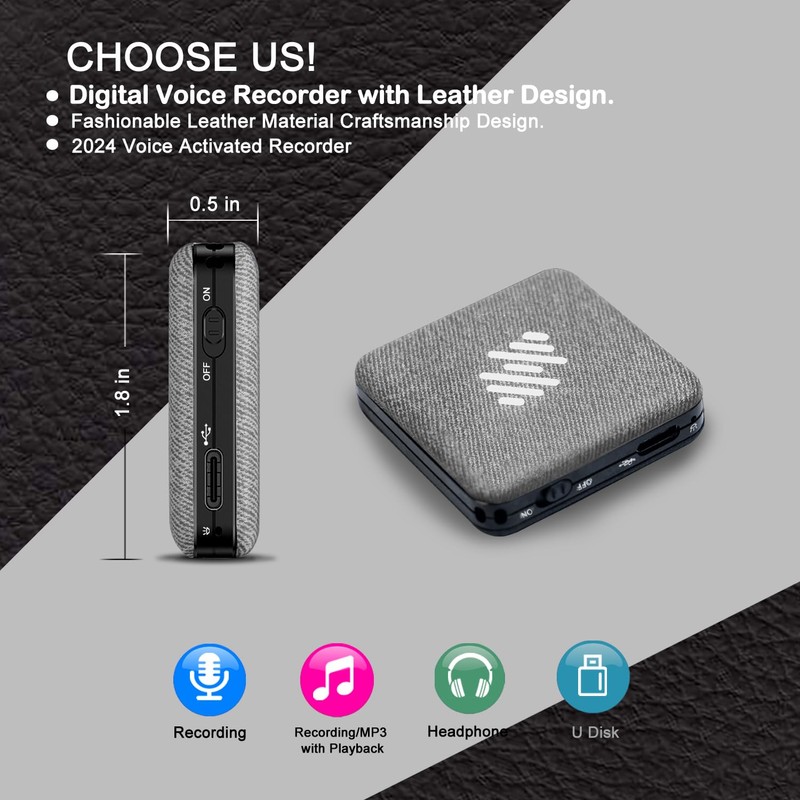 - 🎙️【Design Creativity Voice Recorder】Voice Recorder is made of stylish leather material, and the surface of the Recording Device is wrapped in leather. The appearance is exquisite and stylish. The portable/Pocket Recorder Voice size is very compact. Voice Recorder with Playback/MP3 functions, which is very suitable for carrying. It can meet your recording needs for daily work, meetings, lectures, study, entertainment, etc.