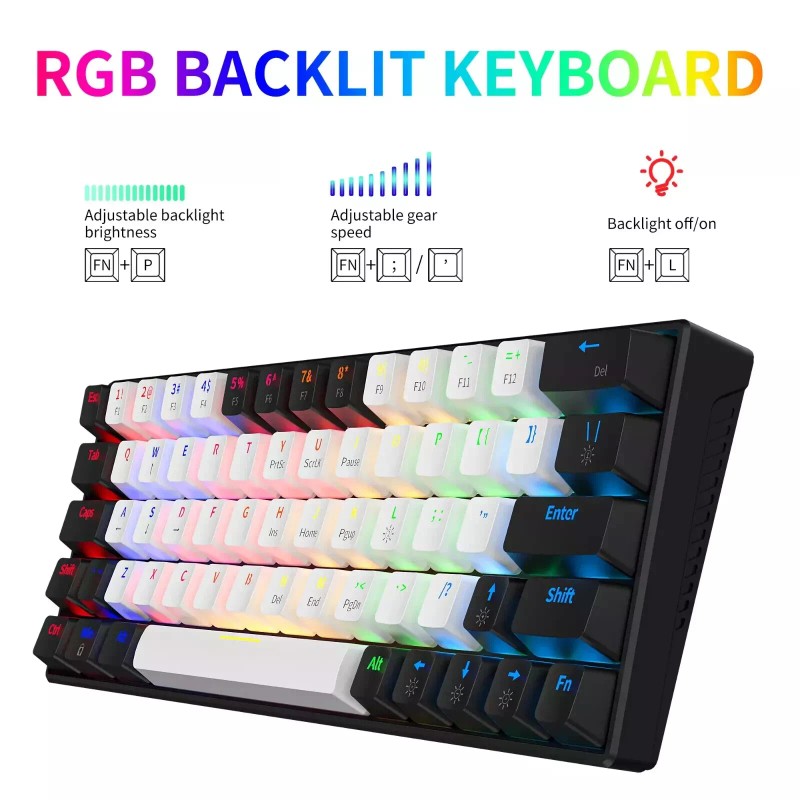 64Keys Computer Wired Mechanical Gaming Keyboard Hot-Swap Backlight - Red Switch