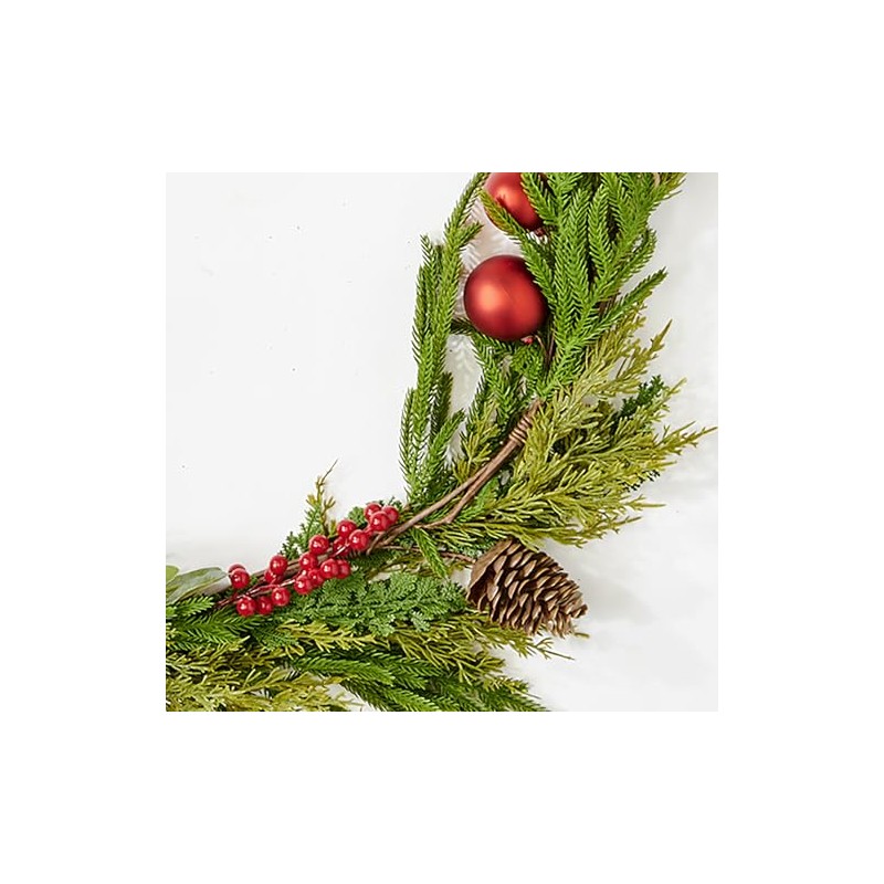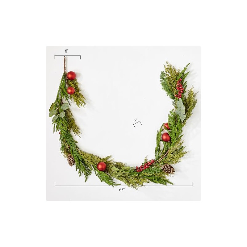 65" Christmas Red Balls and Artificial Pine Cedar Garland
