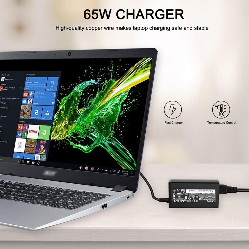 - 65 W power supply charger for Acer Aspire 5 A515-43 A515-52 A517-51G A517-51 Acer Aspire 3 A315-21 F5-573 F5-573G, Aspire 5 charger, Aspire 3 charger.