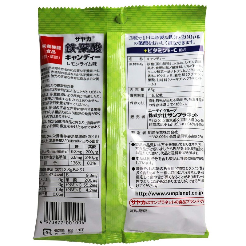 サヤカ 鉄・葉酸キャンディー レモンライム味 65g