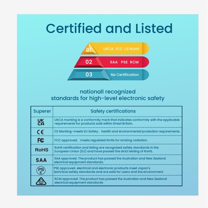 - The Acer laptop power supply. Our products are CE, UL, FCC, RoHS certified, provide overcharge protection system/short circuit/overload protection/overheating protection and are certified and listed by a nationally recognized expert in electronics safety. Only products with the highest quality, workmanship and safety in the industry can pass the extremely strict quality tests.