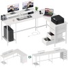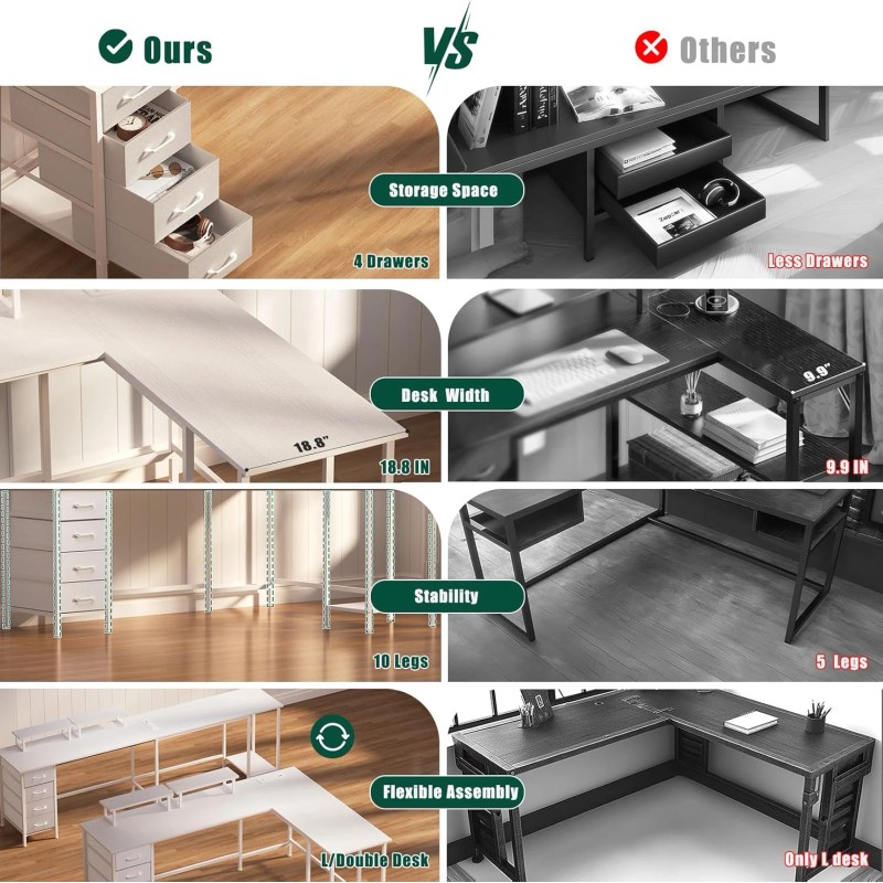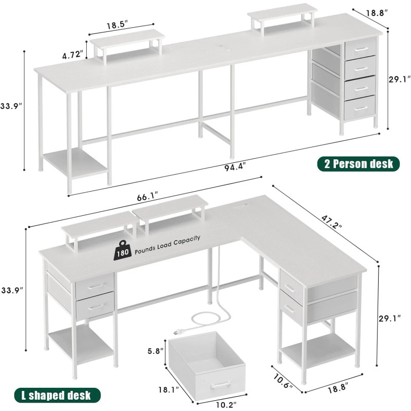 66" L Shaped Computer Desk, 94.4'' Home Office Desk with Power Outlets, 4 Adjust