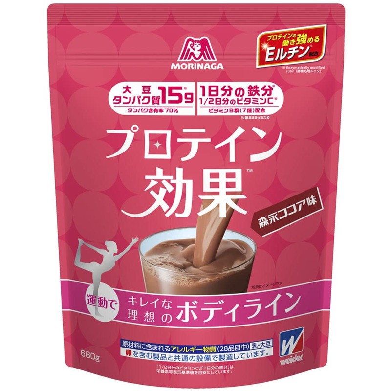 森永 プロテイン効果 森永ココア味 660g (約30回分) ウイダー ソイプロテイン ソイカカオ ボディメイク用プロテイン 1日分の鉄分 1/2日分のビタミンC プロテインの働き強めるEルチン配合 森永製菓