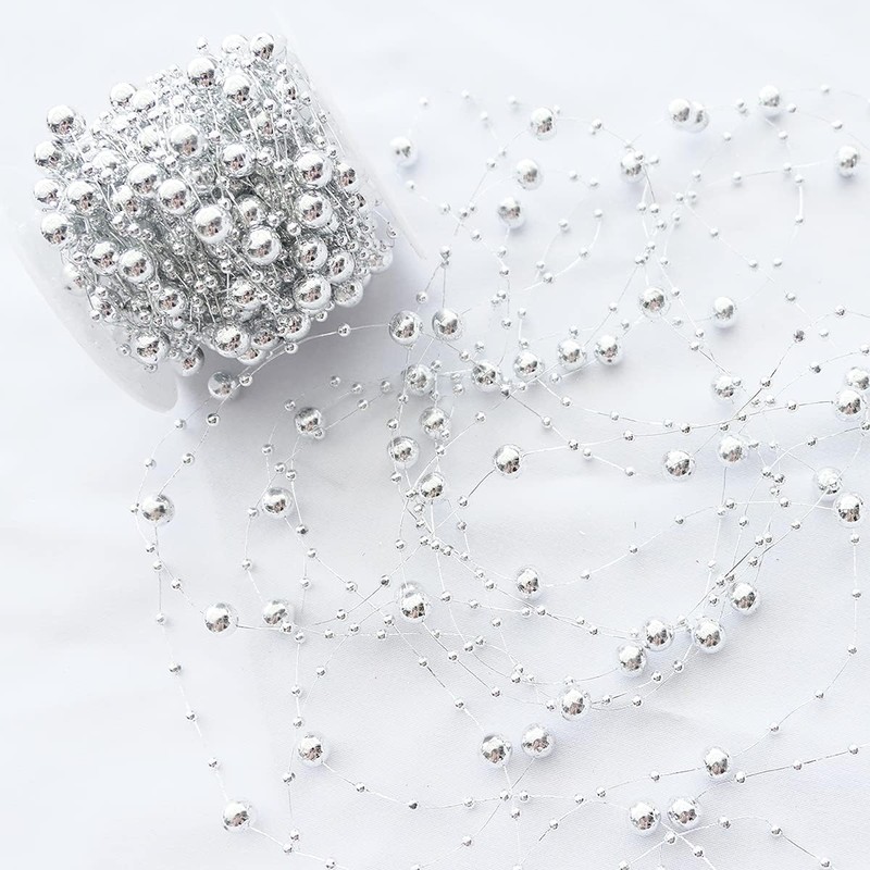 66Feet Christmas Tree Beads Garland Decoration Silvery Pearl Strands Chain for Christmas Tree Decor, Crafts and Holiday Decor