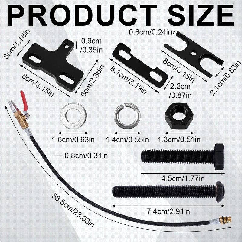 - Complete Kit: You will receive one set of valve spring compressor tool and 1 piece of air compressor hose in the package, including 1 T connector, 1 I connector, 1 H connector, 2 long screws, 2 short screws, 2 nuts, 3 gaskets and 1 lock washer.