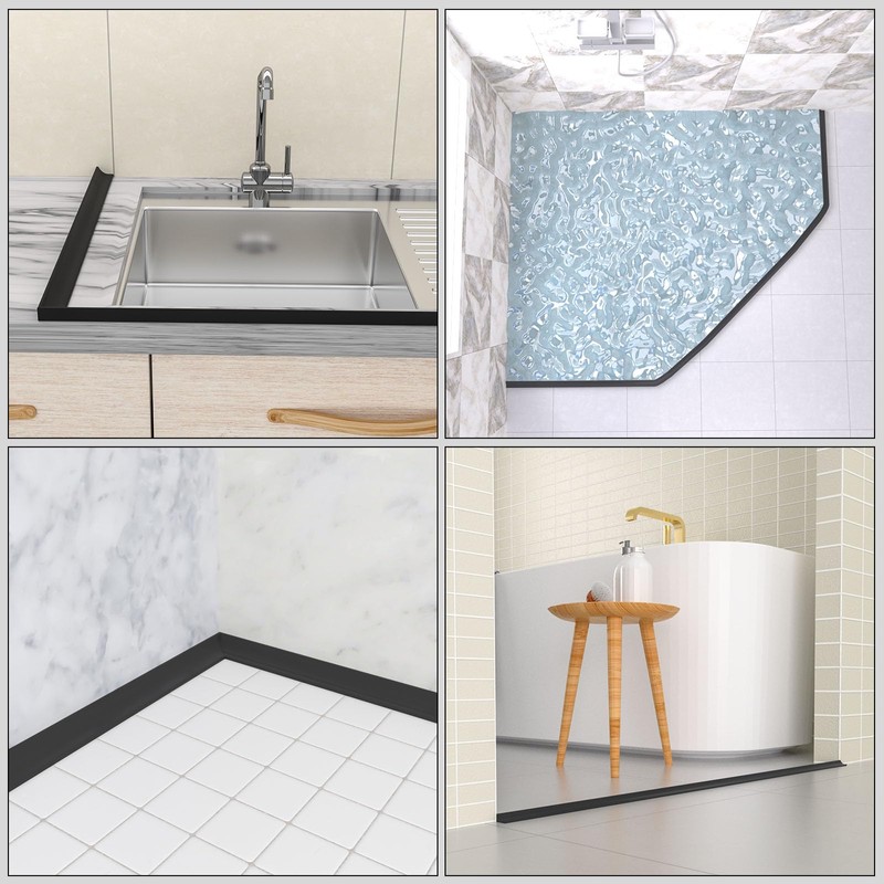 - 【Wide application】Water barriers dam this sticky adhesive strip adheres to almost any smooth surface, including walls, doors, floors,tiles and more. Can cover the gap between bathtub and wall to avoid moisture.This water dam /barrier provides excellent protection for bathroom, kitchen and bedroom environments.