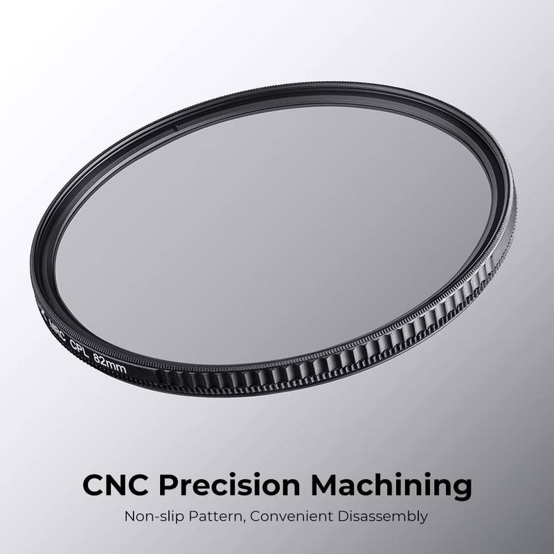 - Ultra-slim rim profile to avoid vignetting on wide-angle lenses, while maintaining rotation capabilities to adjust polarization levels. Extra tough lightweight aluminum-magnesium alloy frame ensuring great durability and jamming prevention.
