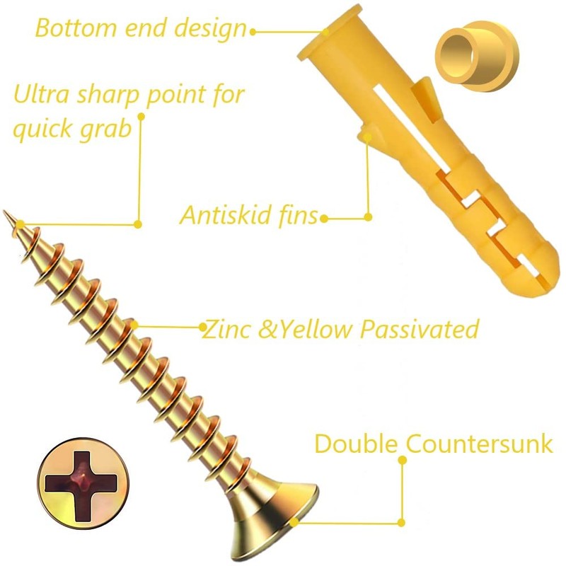 - High Quality Material - PE material anchors,good toughness,anti-aging and not easy to be broken. The screws are made of stronger material carbon steel,zinc plated finish,Sturdy,durable and reliable.
