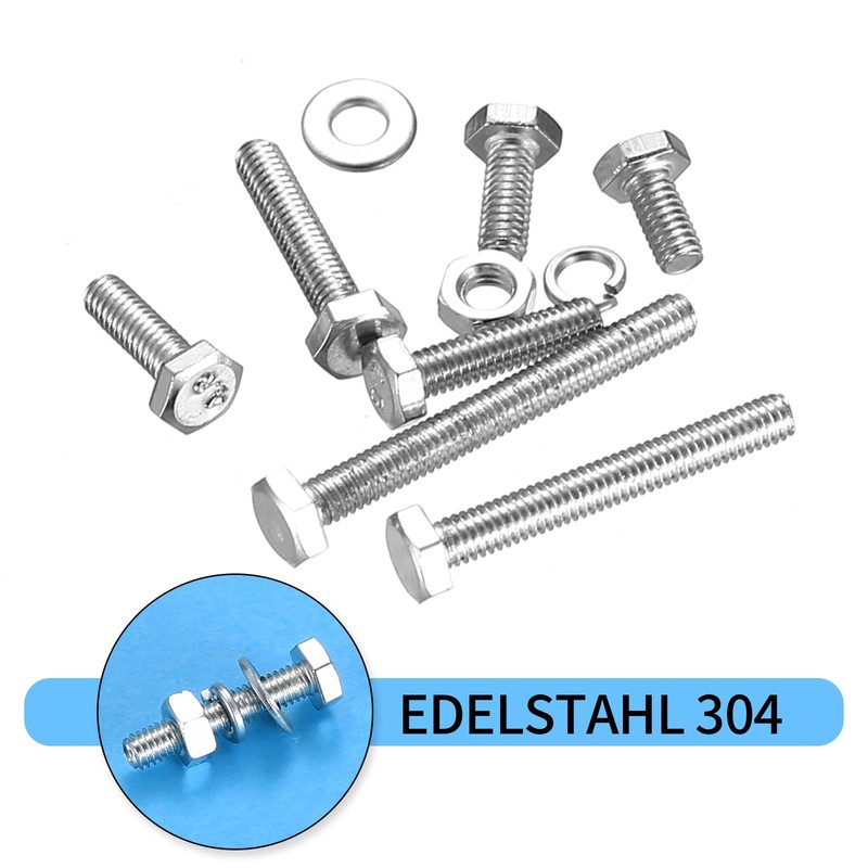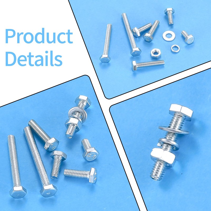 - M4 hex screws: The M4 screw nut set has strong tensile properties, is designed for high loads and is suitable for applications that require strength. Uniform force, no deviation, not easy to slip, even slope, obvious thread, firm thread, good grip and good tightening performance.
