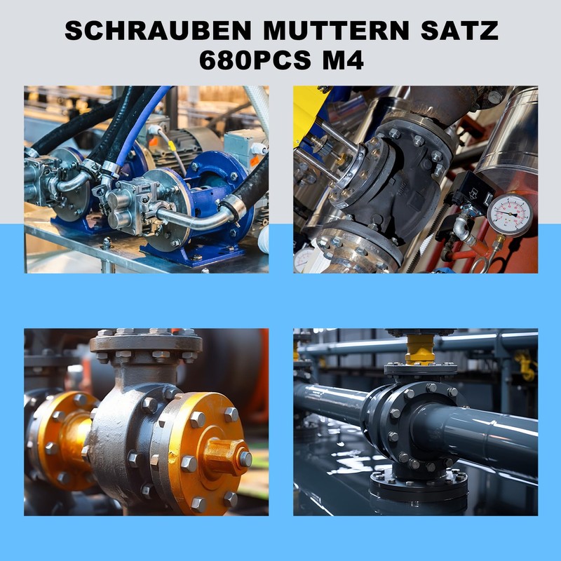 680 Piece M4 Screws Set, Hex Screws Nuts Set, Threaded Screws with Nuts with Spring Washers & Washers Set, Machine Screws Assortment, Metric Screws and Nuts Set (M4)