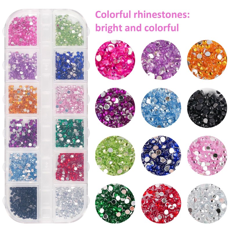 - Mixed size and colours: rhinestones and pearls nails rhinestones are stored in 4 storage boxes with 12 compartments each. These rhinestones and semi-circular pearl nail rhinestones with flat back including mix of colours (white/phantom colour/colour) and sizes (2/3/4/5 mm), different sizes and colours give you more choices, make your nails more dazzling and charming.