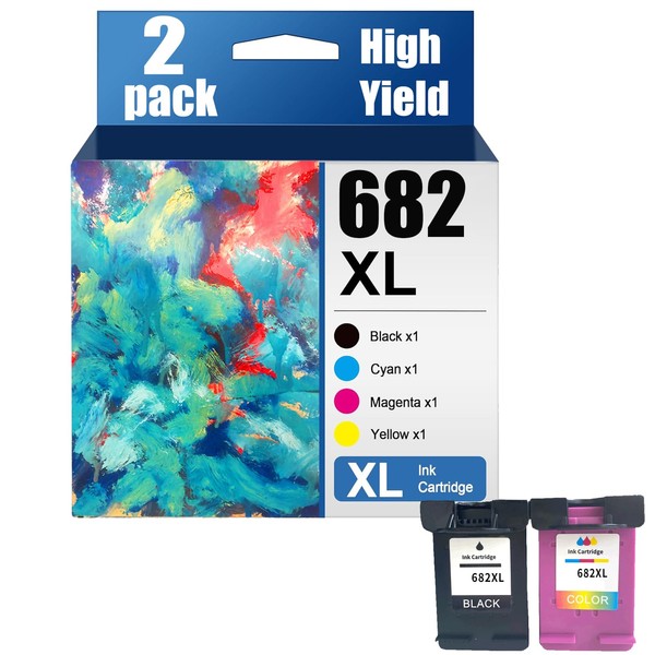 682XL Ink Cartridges Compatible for HP Deskjet Plus 4175 4178 6078 6478 1216 2336 2775 2776 2777 2778 2779 Printer High Yield Replacement Refill Combo Pack, Combination Package × 2, normal