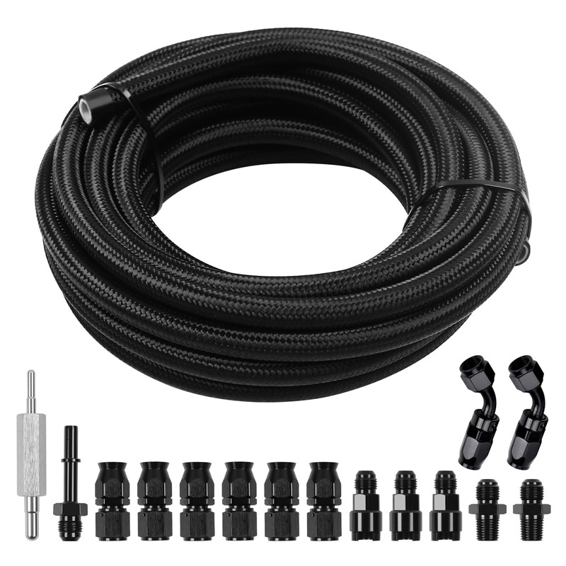 6AN 3/8" 25FT PTFE Transmission Cooler Line Set, Replacement for E85 & LS EFI Systems (Nylon and Stainless Steel Braided Lines)