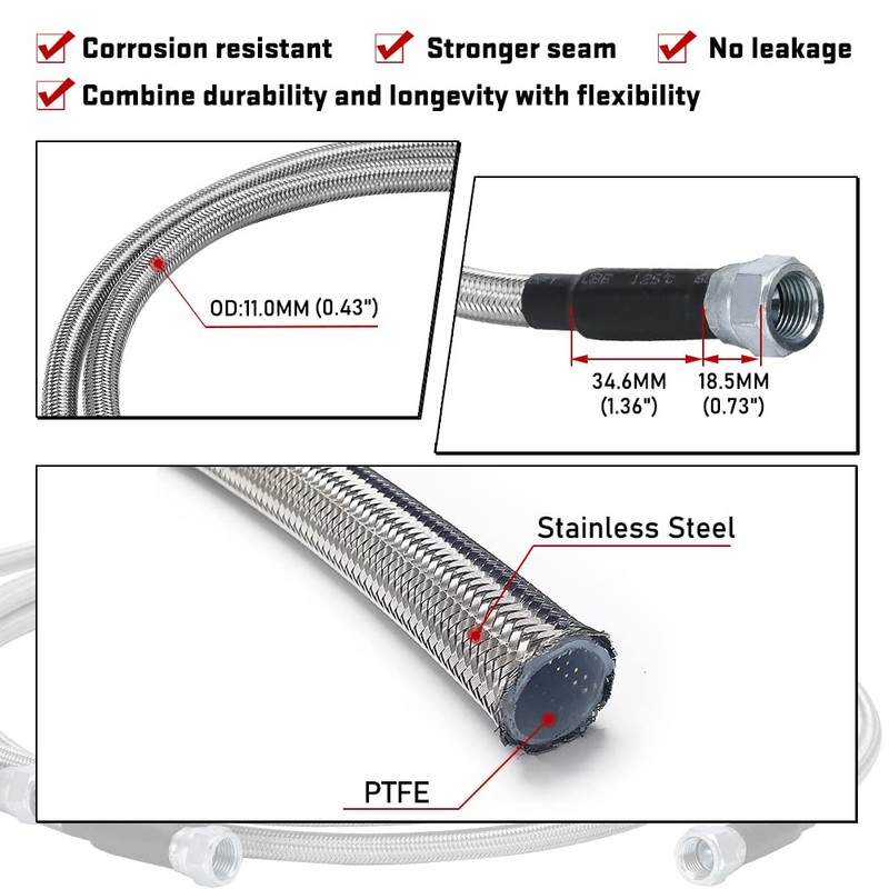 • 【Superior Material】 Made of high-quality Stainless Steel and PTFE, combines durability and longevity with flexibility, corrosion resistance, stronger seam, and no leakage.