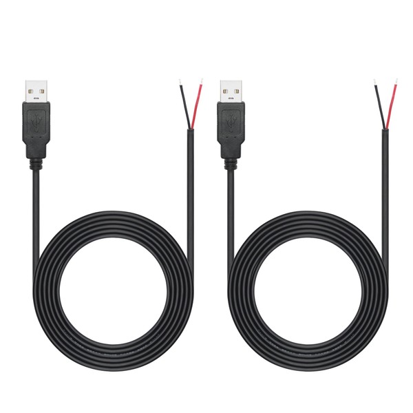 6FT USB A Male Plug 2 Pin Bare Wire, USB 2.0 A Male Pigtail Open End Power Cable, for USB Equipment Installed or DIY Replacement Maintenance Power Cable(2Pcs)