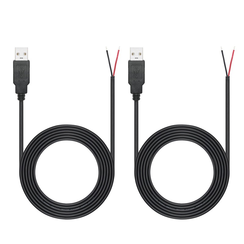 - 【DIY 2Pin Bare Wire】USB A Male plug 2 pin bare wire, 1 end of USB A 2.0 male plug, and the other end of 2 pin open end bare wire, used for 5V/3A usb equipment lnstalled or DIY replacement maintenance power cable.