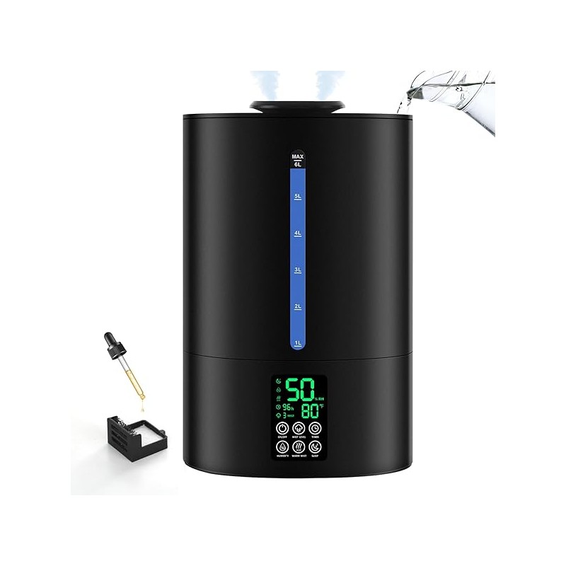 6L Humidifiers for Bedroom Large Room Home, Cool and Warm Humidifier for Plants Mist Top Fill Desk Humidifier Essential Oil Diffuser, Quiet Humidifiers with Adjustable Mist,360°Nozzle-Black
