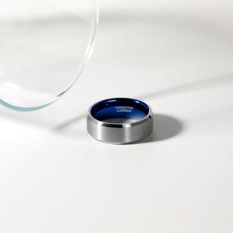 - Design: 4mm 6mm 8mm wedding rings for men and women. Silver brushed matte finished surface with blue inner, beveled edges, classic dome plain design