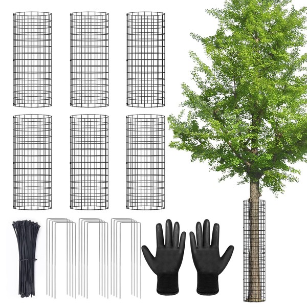 6Pack Tree Trunk Protector, Metal Tree Guards Trunk Protector with Zip Ties & Metal Stakes & Glove, Tree Bark Protector, Tree Protectors from Deer Animals Trimmers 5.3'' Dia x 16.5'' H (6 Pcs)