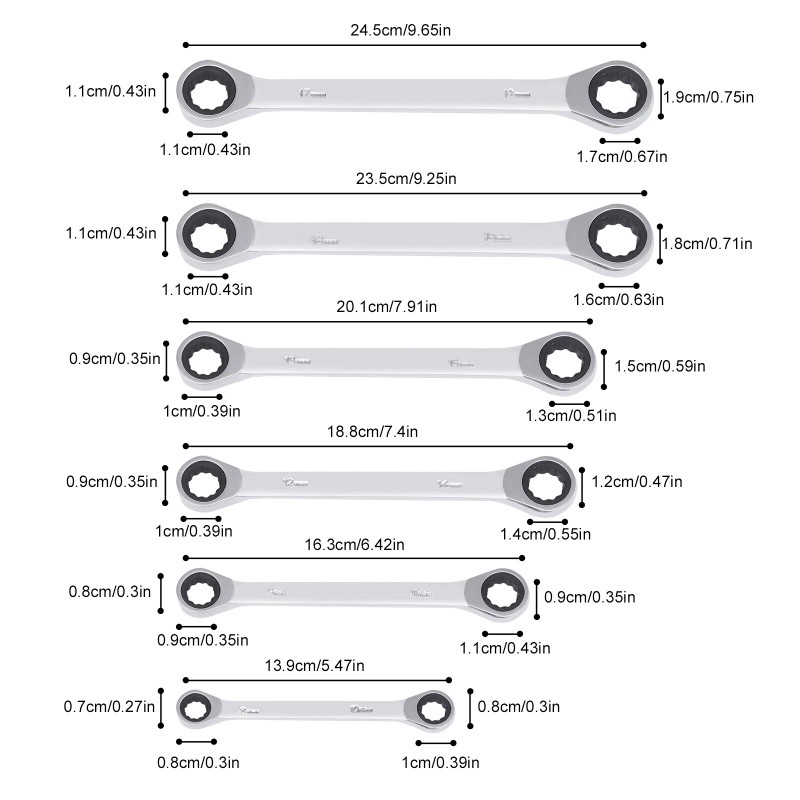 6PC NEW Double Box End Ratcheting Wrenches Extra Long Metric Universal