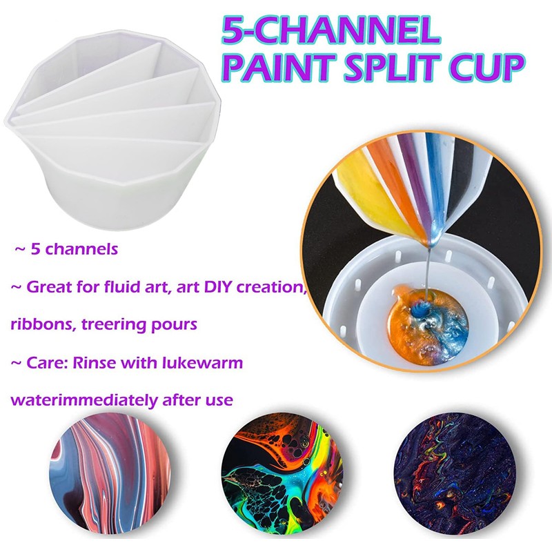 - ❀【MULTI DIVIDERS DESIGN】- The silicone paint cup is designed with 5 channels for separating paint, Each slot can be filled with a different color, allowing you to infuse your creations with a variety of different colors, creating a variety of beautiful patterns when poured with pouring strainers.