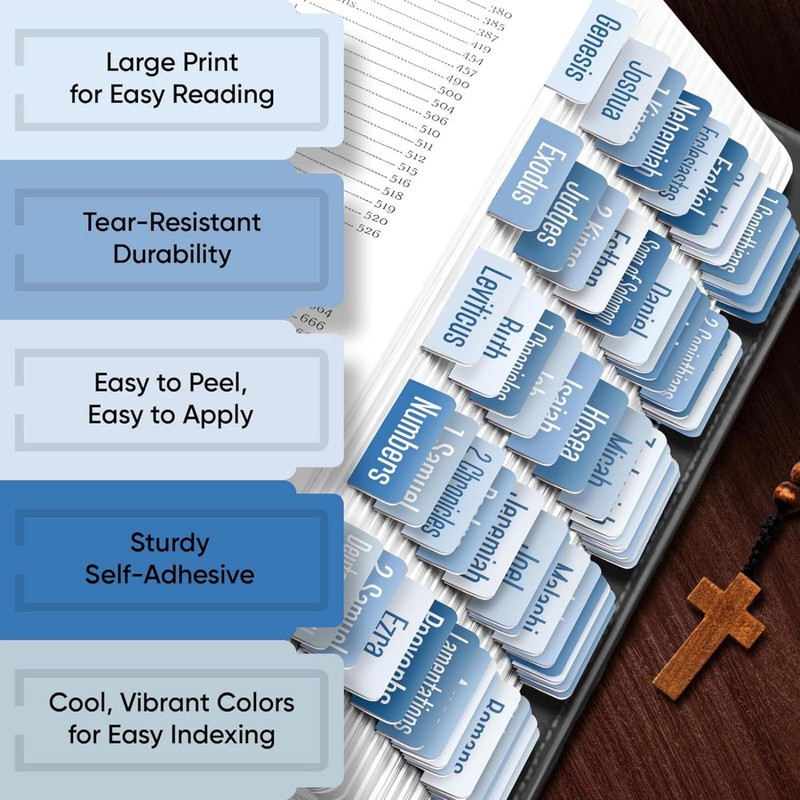 - Durable and Reliable:These bible tabs are crisp and visible,bible book tabs with a refined and elegant design.The bible tabs for study bible maintain the adhesiveness long time,and bible accessories are both tear-resistant and bible study accessories are durable