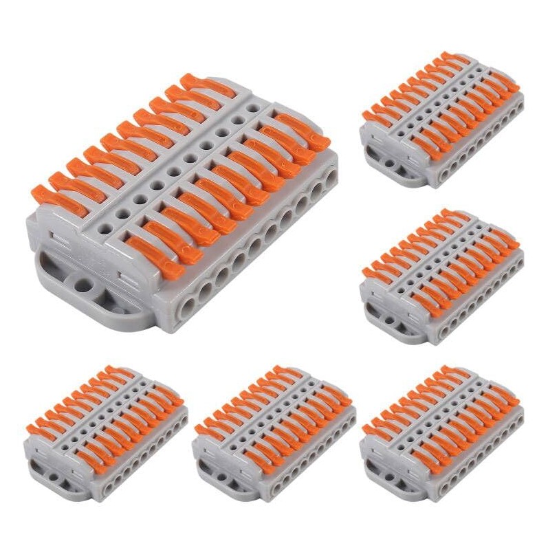 6PCS Compact Lever Wire Connectors 10 Into 10 Out Splicing Wire Connector Electrical Quick Connection Terminal for Circuit Inline 28-12 AWG