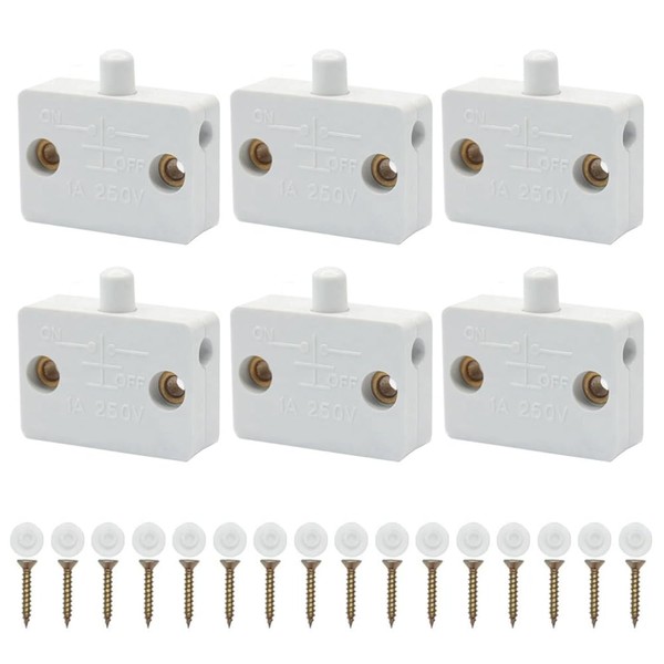 6PCS Cupboard Door Switch White 1A 250V Cupboard Light Control Switch Cupboard Auto Control Switch Push to Wardrobes, Bookcases, Cupboard Doors, Shoe Cabinets