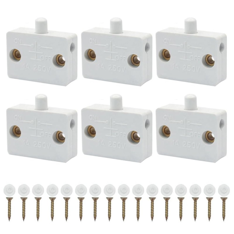 6PCS Cupboard Door Switch White 1A 250V Cupboard Light Control Switch Cupboard Auto Control Switch Push to Wardrobes, Bookcases, Cupboard Doors, Shoe Cabinets
