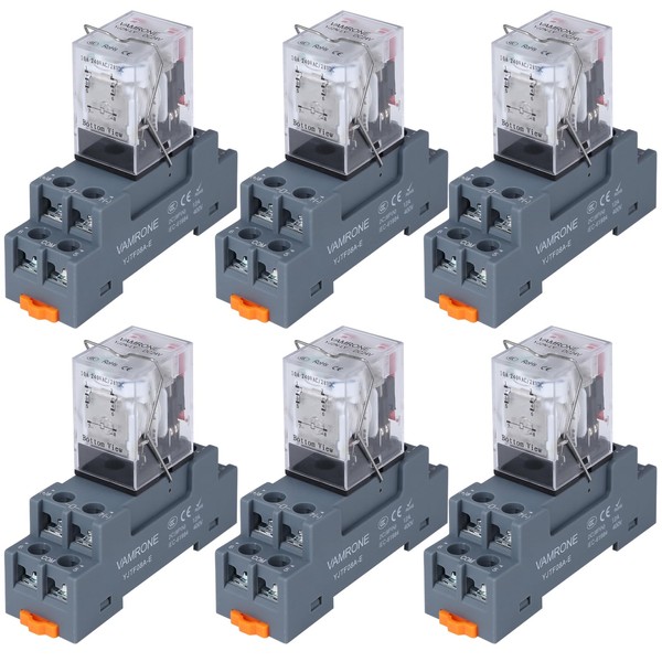 6PCS Electromagnetic Power Relay, 8-Pin 10 AMP 24V DC Relay Coil with Socket Base, LED Indicator, DPDT 2NO 2NC - MY2NJ [Applicable for DIN Rail System]